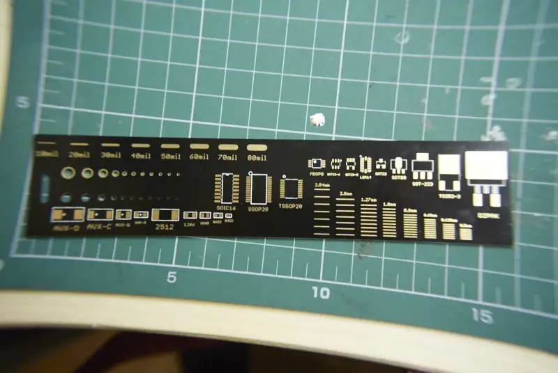 Zraven sem naročil še merilo, na katerem so nekatere velikosti čipov, debeline linij in velikosti povezovalnih otočkov. Zadeva pride prav pri načrtovanju tiskanih vezij.