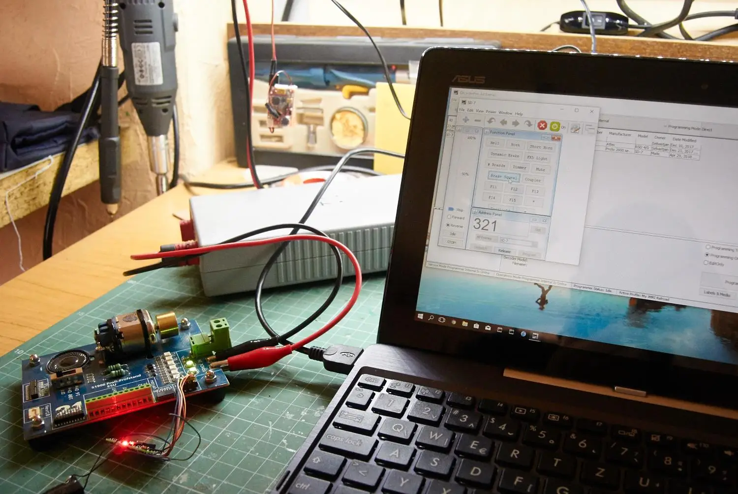 Za prijatelja Matica sem digitaliziral lokomotivo SD-7. Ker uporablja Program LocPanel ima v lokomotivi vgrajena 2 dekoderaj (motornega in zvočnega). Program LocPanel pa mu omogoča povsem realno vožnjo. Program LocPanel je napisal Uroš Kunaver.