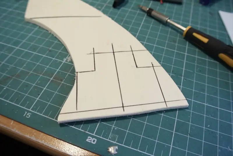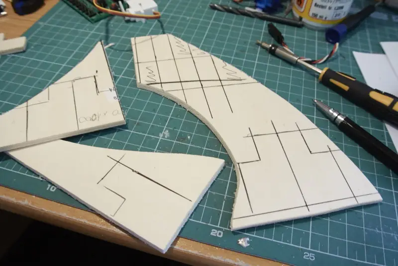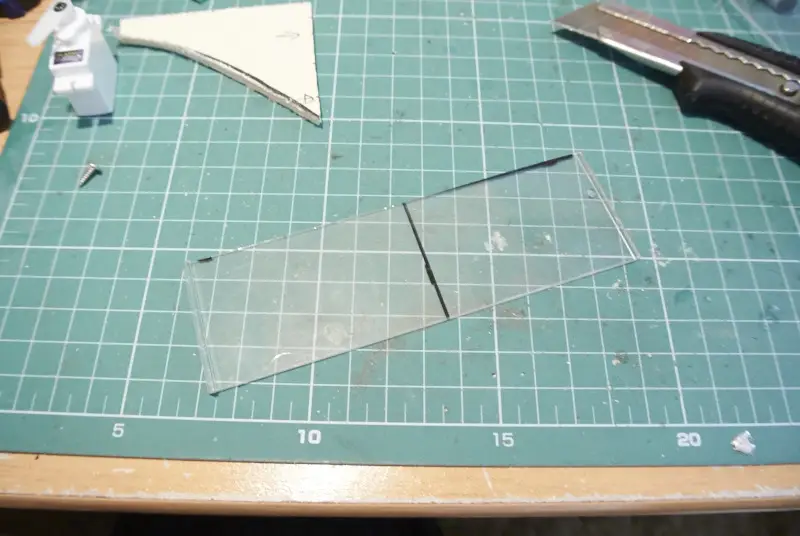 Plastična podloga, pred rezanjem. Za podlogo sem uporabil škatle za CD-je.