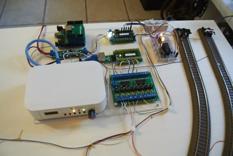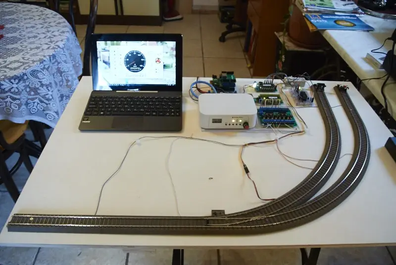 Prvi test, S88 feedback in tokovni modul še nista povezana, prav tako manjka še 5V napajanje za DCC dekoder in za vse LED diode.