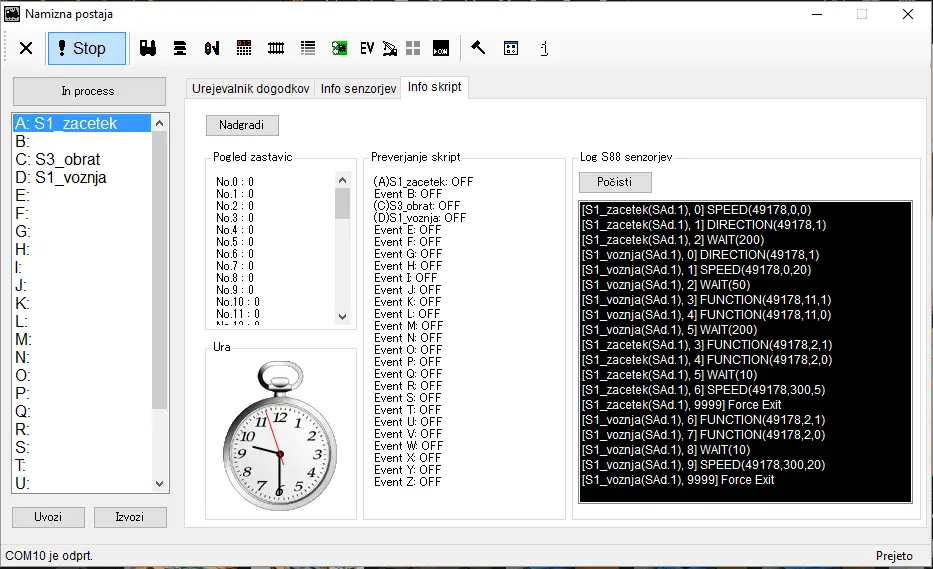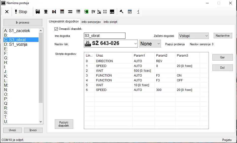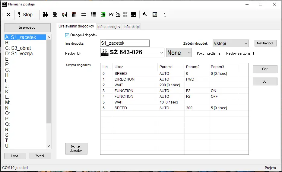 Programiranje senzorjev, hitrosti in funkcij na lokomotivi, vse se zapisuje v xml datoteko