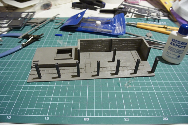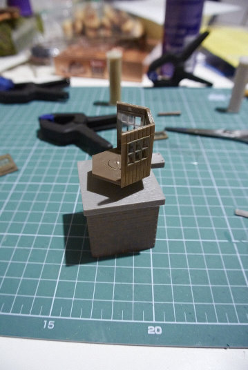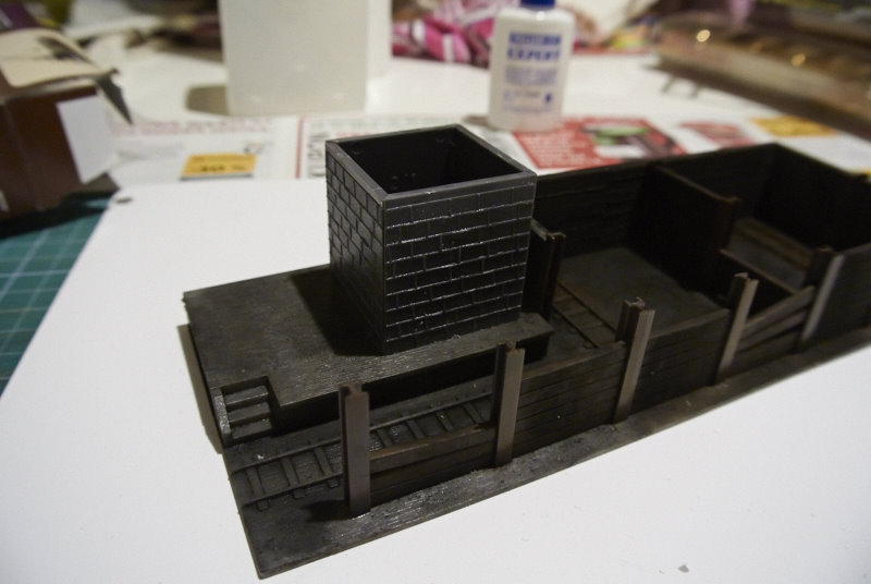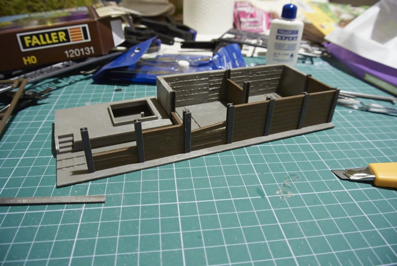 Za osnovo sem vzel Fallerjev kit. Ko bo skladišče vgrajeno na maketo bo za premike nakladalnega žerjava poskrbel servo motorček, ki bo vgrajen v podnožje žerjava.