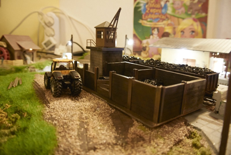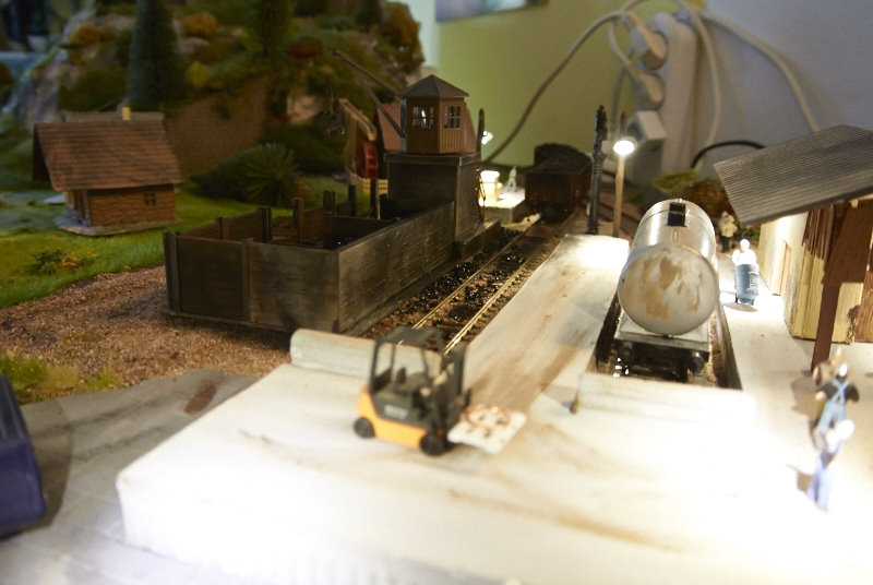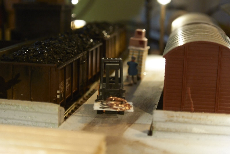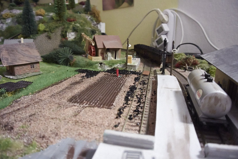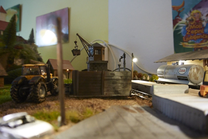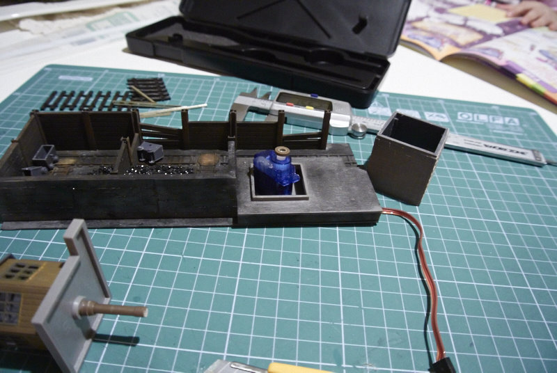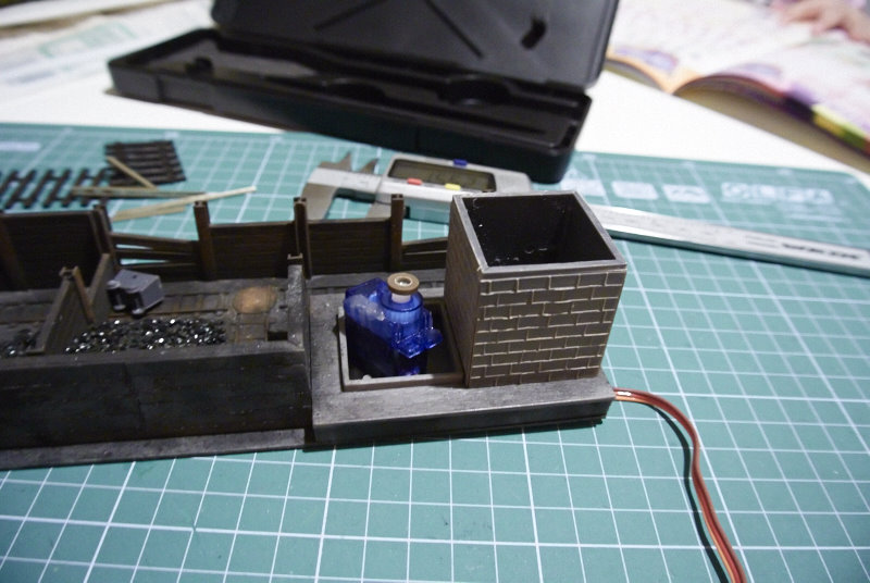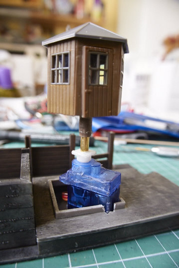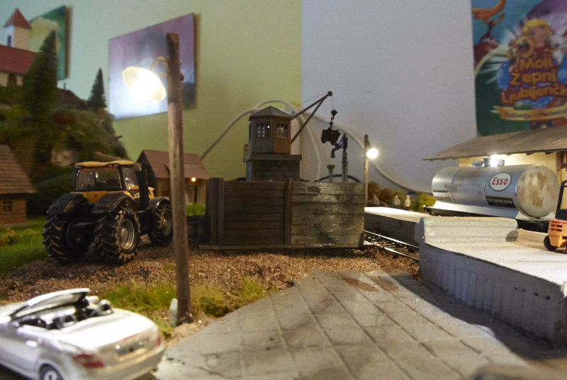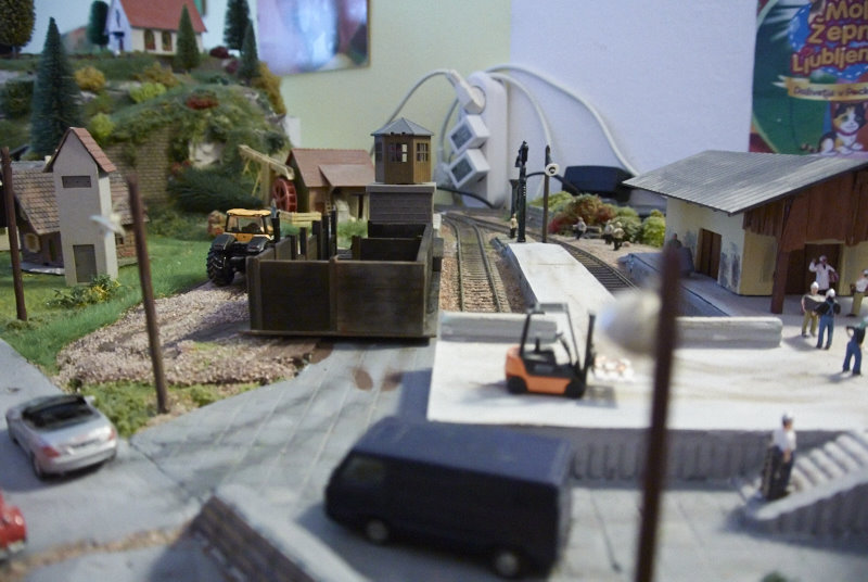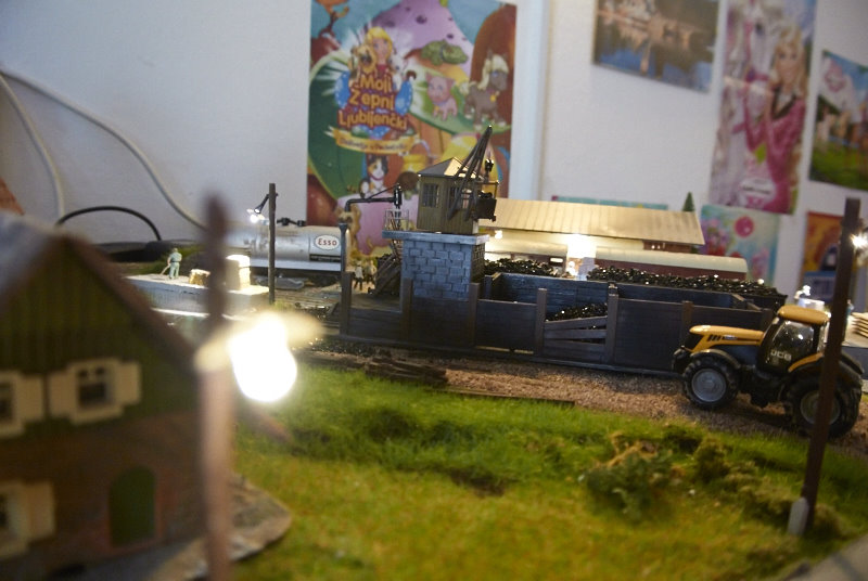Skladišče je postavljeno na maketo, servo motor je povezan z DCC dekoderjem