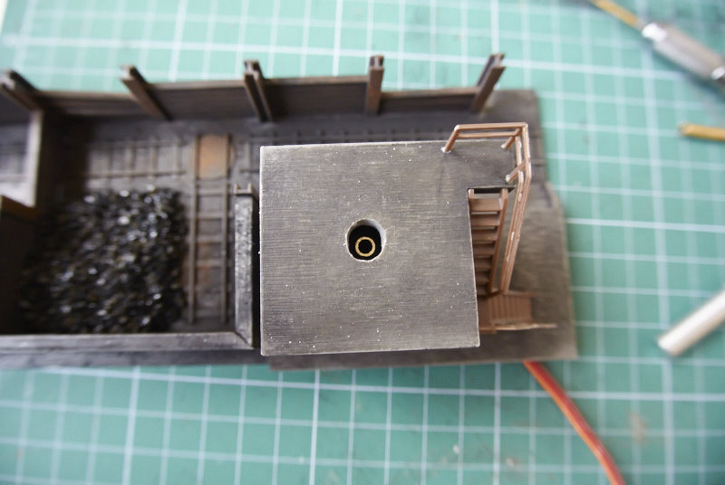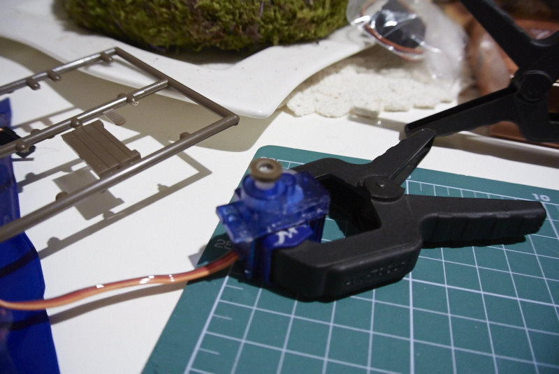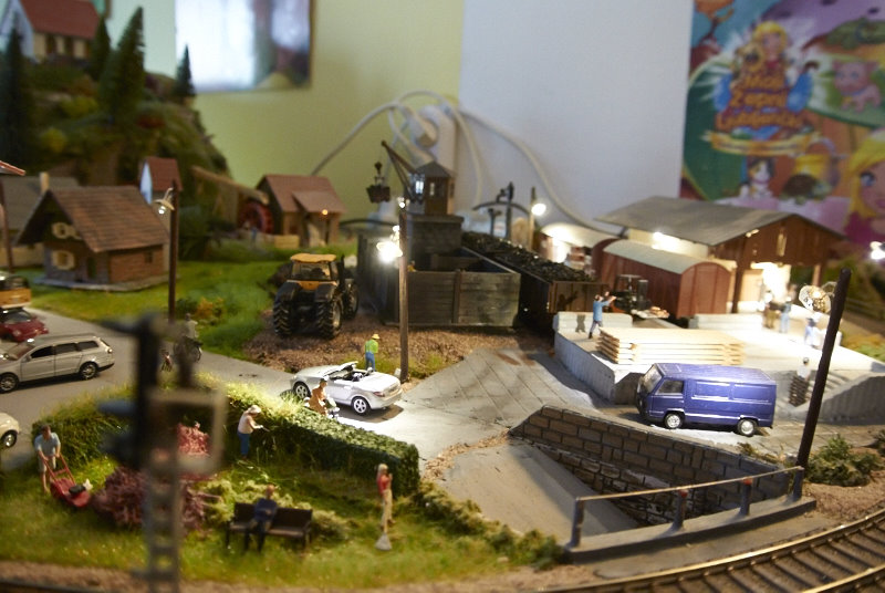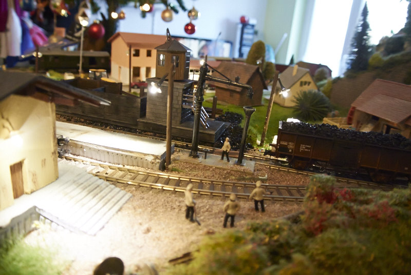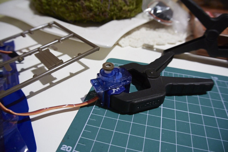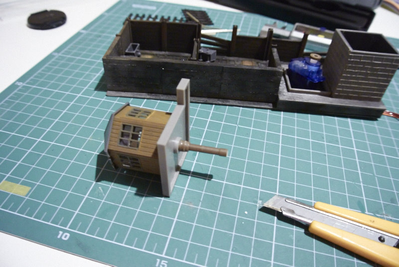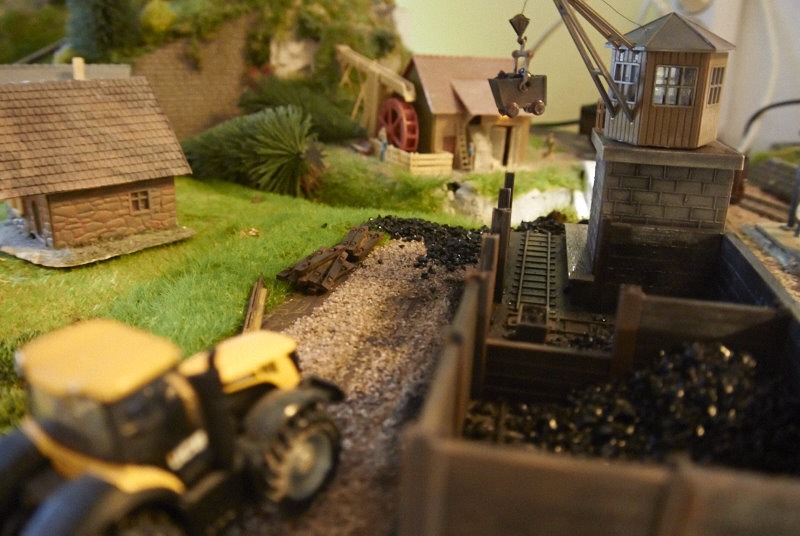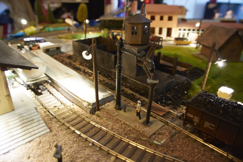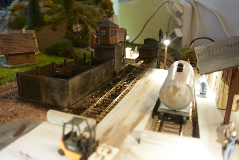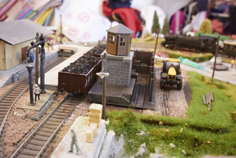 Skladišče je postavljeno na maketo, servo motor je povezan z DCC dekoderjem