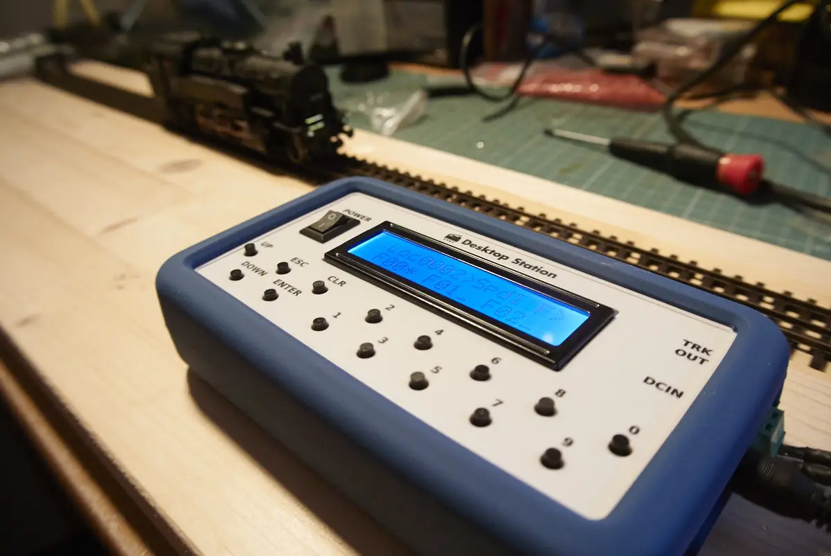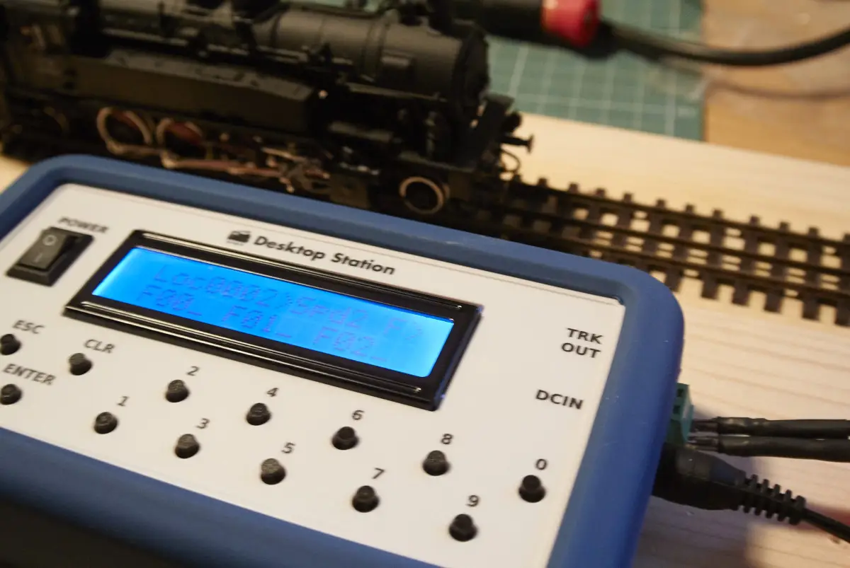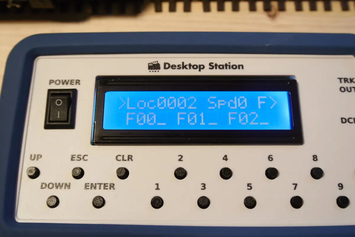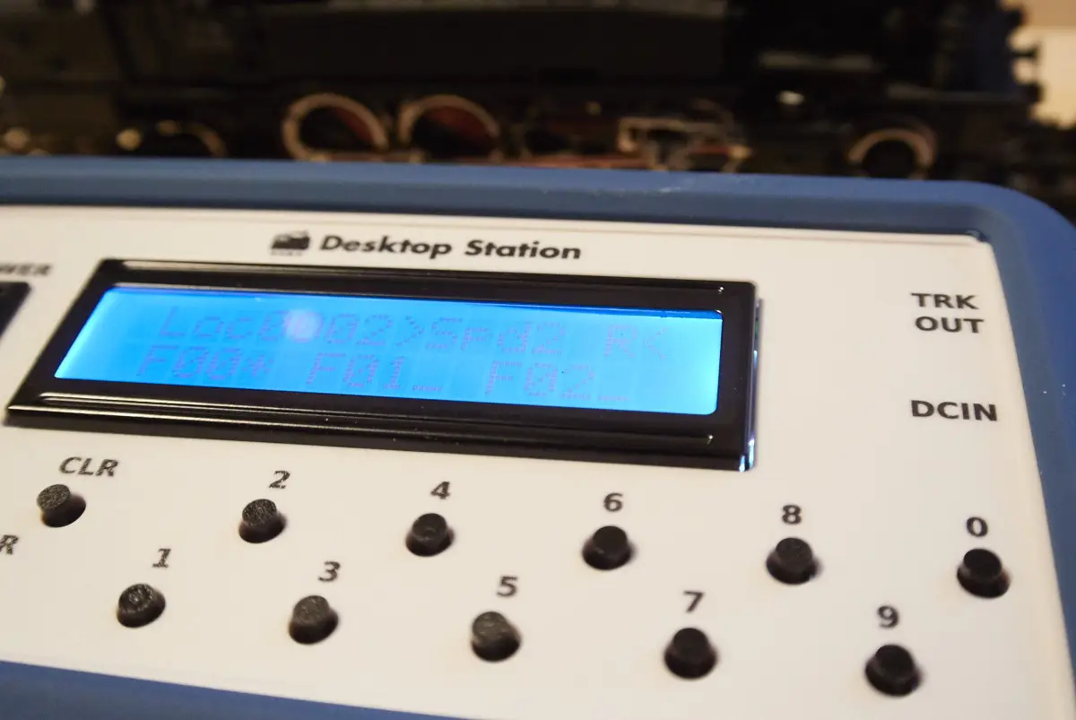 Test DSblueboksa z lokomotivo, branje naslova. Na displeju vidimo, da je uporabljen kratki naslov